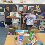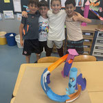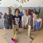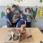 Am Ende präsentierten alle Gruppen ihre Ergebnisse. Die Murmelbahnen waren ganz unterschiedlich gestaltet – manche mit Kurven, andere mit kleinen Tunneln oder mehreren Etagen. Die Kinder hatten sichtlich Freude an der Aufgabe und konnten viele eigene Ideen einbringen.