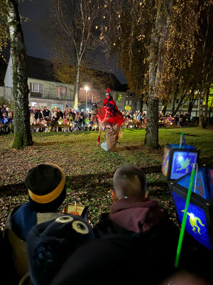 Am Freitag war es wieder so weit. Sankt Martin ist mit seinem Pferd und unseren Kindern mit vielen bunten Laternen durch Blumenrath gezogen. Anschließend konnten wir sehen, wie Sankt Martin auf dem Pferd um das große Martinsfeuer geritten ist. Er hat auch seinen Mantel mit einem Bettler geteilt.