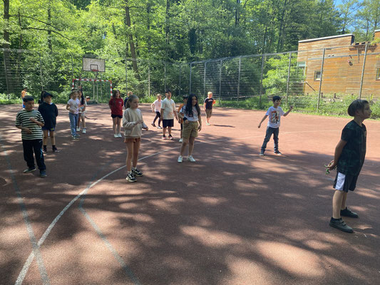 Soooo lange haben alle darauf gewartet: Am 02.04.2025 ging sie los, die Klassenfahrt der 4. Klassen zur Jugendherberge Monschau-Hargard. Nachdem die Kinder das Gelände erkundet hatten und nach dem leckeren Mittagessen die Zimmer eingerichtet und die Betten (ohne ernsthafte Verletzungen😉) bezogen waren, ging es mit Marcel, unserem Betreuer, in den Wald. Dort bauten die Kinder aus Waldmaterial Hütten und dekorierten diese. Nach der Vorstellung und Würdigung der Bauwerke gingen wir zurück zur Jugendherberge. Nach dem Abendessen war aber noch lange nicht Schluss, denn es ging in die Disco. Wer sich auf der Tanzfläche genügend ausgetobt hatte, konnte noch eine Runde Tischtennis spielen oder sich in der Sitzecke ausruhen. Ein langer aufregender Tag ging schließlich zuende und es kehrte langsam Ruhe ein. Das ein oder andere Heimweh konnte recht schnell bezwungen werden. Der zweite Tag begann mit Kooperationsspielen, bei denen z.B. die Kinder alle im Teamwork ein Glas Wasser auf einer Plane rund um die Jugendherberge transportieren mussten, ohne dass Wasser verschüttet wurde. Klar, dass das für die Schildkröten und Seehunde kein Problem war!! Beim anschließenden Bogenschießen konnten die Kinder dann ihre Treffsicherheit testen. Es war gar nicht so leicht, wie zunächst vermutet, die Scheibe zu treffen. Nach der Stärkung mit einer megaleckeren Riesenportion Spaghetti Bolognese erklärte Marcel verschiedene Spielstationen, die die Kinder durchlaufen sollten, u.a. mit einem Zündstein ein Feuer entfachen oder Riesenjenga. Mit zwei anschließenden Runden Stratego endete der Nachmittag. Als es dunkel wurde, gingen wir noch mit unseren Taschenlampen auf eine kleine Nachtwanderung. Nach einer letzen kurzen Nacht und nachdem wir alle Zimmer und unseren Aufenthaltsraum aufgeräumt hatten, ging es mit dem Bus erschöpft aber glücklich zurück nach Alsdorf.