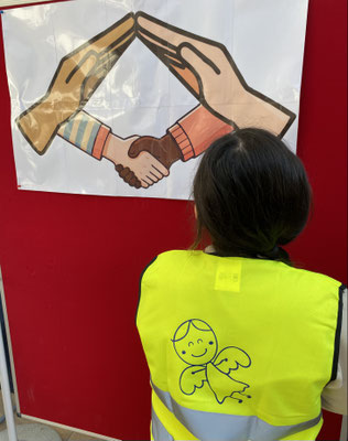Neben der Streitschlichtung drinnen werden auch immer zwei Kinder als Pausenengel draußen auf dem Schulhof frühzeitig gegen Streit vorgehen. Die Kinder bekommen entweder die Möglichkeit sich sofort zu entschuldigen oder werden in die Streitschlichtung gebeten.