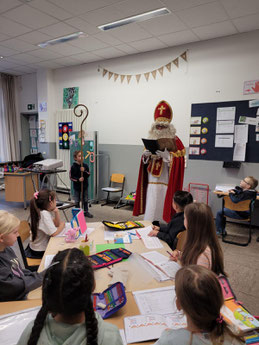 Am 6.12.2024 hatten wir hohen Besuch in der Schule. Der Nikolaus kam in jede Klasse und brachte Leckereien mit. Zuvor las er den Kindern aber noch seine Beobachtungen aus dem letzten Jahr