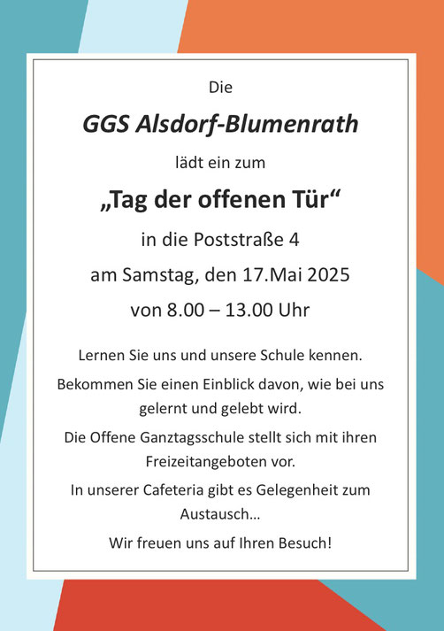 Die Klassenlehrerinnen und das gesamte Team der GGS und OGS Alsdorf-Blumenrath freuen sich auf die gemeinsame Zeit mit unseren neuen Kindern!